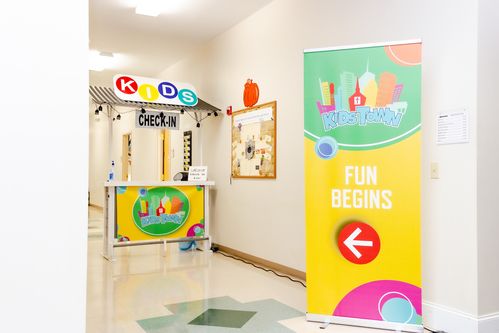 After singing together as a family, parents walk their kids (Pre-K - 5th Grade) to the check-in desk for Kid's Worship.